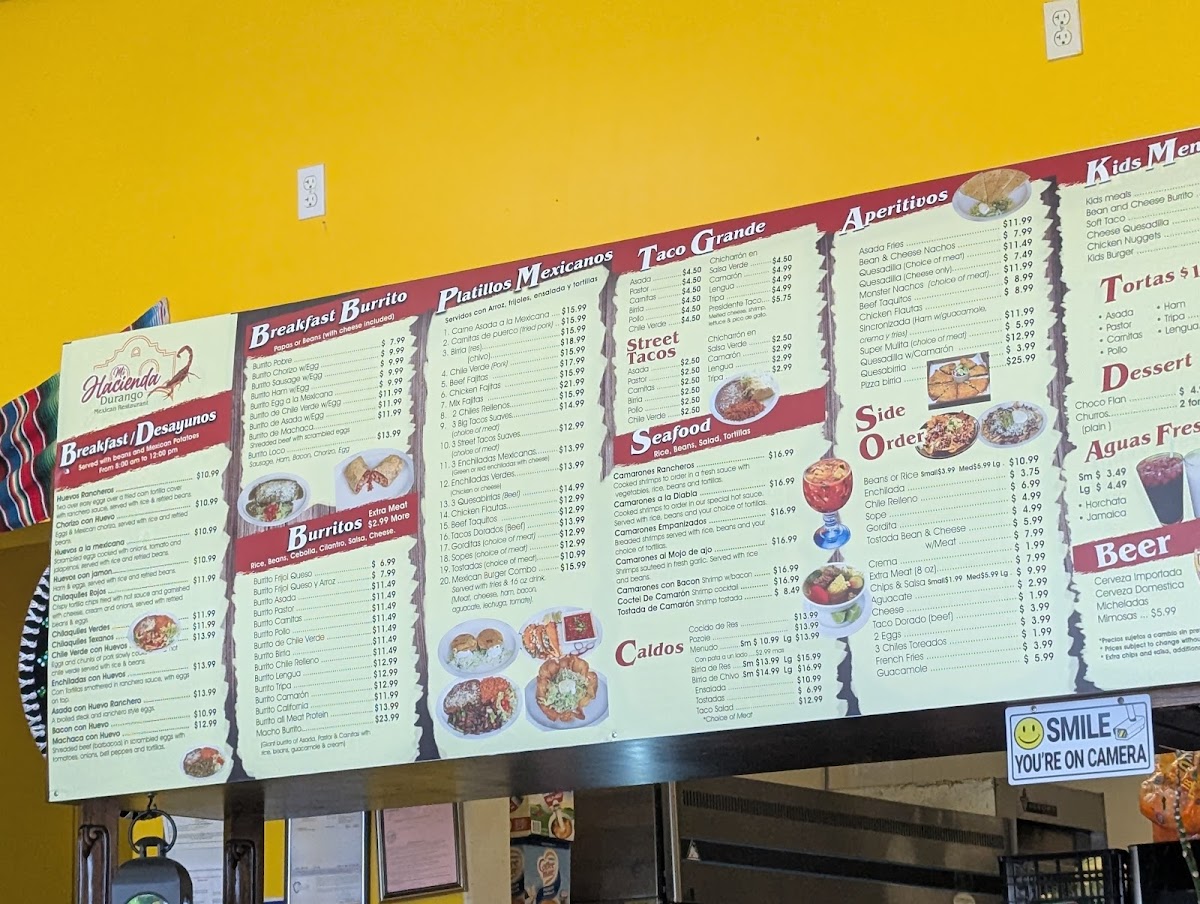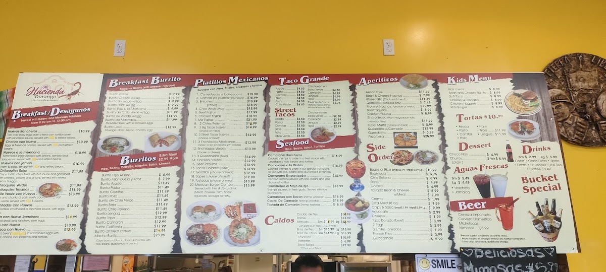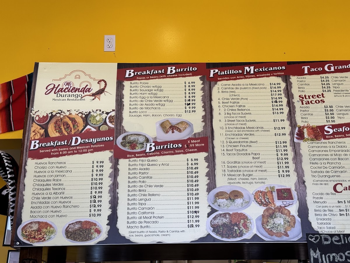 Mi Hacienda Durango Mexican Restaurant Menu